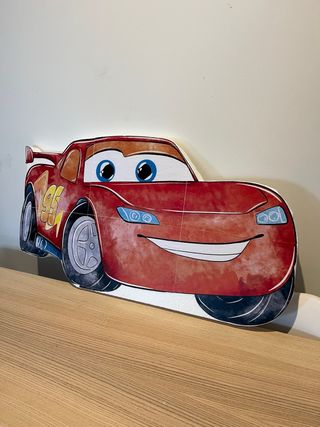 Figuras decorativas de personajes de Cars, hechas en polispan. Ideal para ambientar fiestas o habitaciones. - Material de polispan. - 4 figuras disponibles: Rayo McQueen Mate Mack Logo Rusteze Medidas aproximadas: Mack: 80x75 Mate: 89x72 Logo Rusteze: 64x55 Mcqueen: 83x47 20€ la unidad o 60€ el pack de 4.