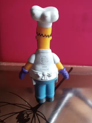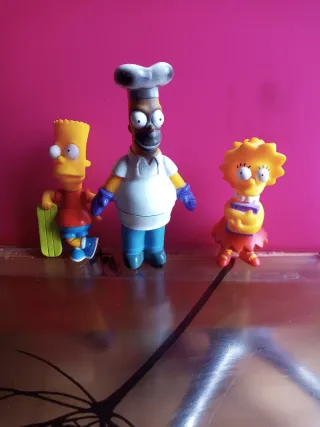 Lote de figuras de los personajes de Los Simpson. - Incluye a Bart Simpson con patineta. - Homer Simpson vestido de chef. - Lisa Simpson. - Fabricadas en plástico.