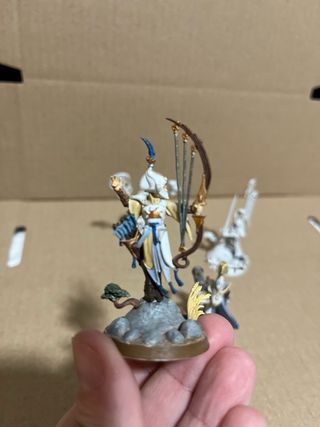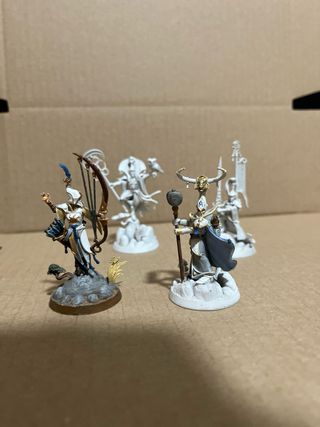 Conjunto de 4 figuras de Lumineth Realms-lords. - Figuras de fantasía. - 2 de ellas ya pintadas y otras 2 imprimadas en blanco Más Warhammer en mi perfil