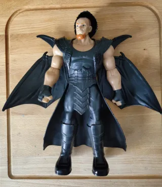 Figura articulada del Undertaker de aproximadamente 30 cm de altura. - Diseño detallado con capa y alas. - Ropajes negros. - Botas negras.