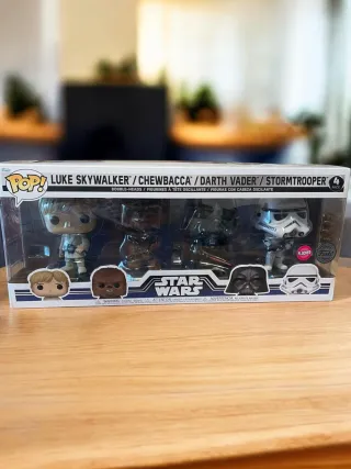 Pack de 4 figuras Funko Pop de Star Wars. - Incluye a Luke Skywalker, Chewbacca, Darth Vader y un Stormtrooper. Totalmente nuevas, a estrenar.