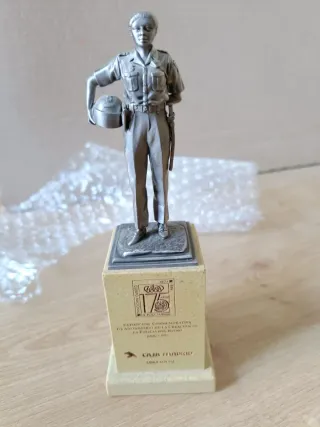 Figura conmemorativa del Cuerpo Nacional de Policía, figura de metal, peana de resina. - Exposición conmemorativa 175 aniversario de la creación de la Policía del Reino. - Caja Madrid Obra Social. - Junio 1999.