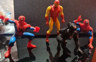 Conjunto de cuatro figuras de superhéroes. - Incluye figuras de Spider-Man, Iron Man y Venom. - Ideal para coleccionistas y fans de Marvel.