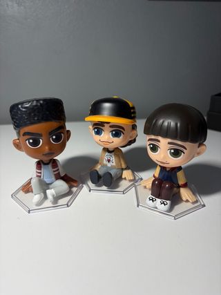 Pack de figuras coleccionables de Stranger Things, colaboración con McDonald's. - Figuras de personajes icónicos. - Diseño chibi. - Bases individuales para exposición.