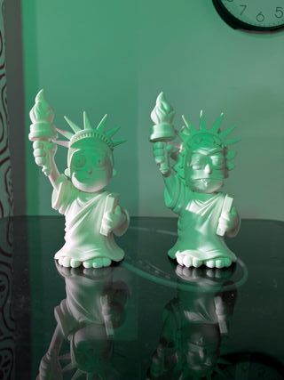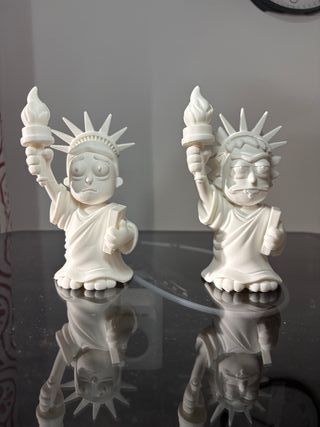 Set de dos figuras decorativas inspiradas en la Estatua de la Libertad y los personajes de Rick y Morty. Fabricadas en color blanco. -12cm de altura - Diseño único. - Ideal para coleccionistas.