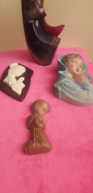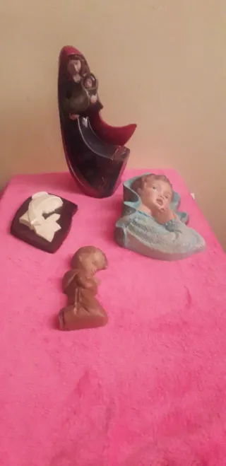 Conjunto de figuras religiosas, incluyendo representaciones de vírgenes. No envio - Figura de la Virgen con el NNiño.4€ - Figura virgen orando.4€ - Figura de un bebé.2 - Figura de la Virgen con el Niño en un marco.3