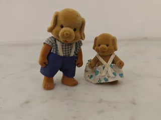 Set de figuras de perros, un padre y su hija. De terciopelo. - Figura de perro adulto con camisa a cuadros y pantalones azules. - Figura de perrita con vestido blanco y flores azules. 📽️Puedo hacer mas fotos si se desea 📦Envio rapido, a tiempo para las navidades!!