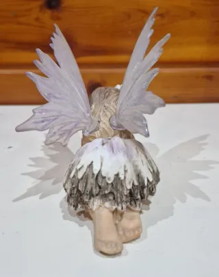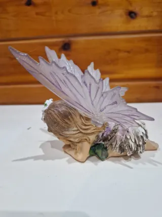 Encantadora figura de hada con alas detalladas y vestido morado. - Diseño delicado y fantasioso. - Base decorativa con flor. - El hada grande 25€ las demás 10€ por unidad