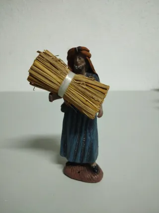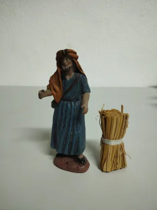 Figura de Belén representando a un pastor con un haz de espigas. Ideal para completar tu belén. - Figura de pastor. - Lleva un haz de espigas atado. - Vestimenta de color azul y turbante. - Barro y trapo. - Figura de 13 cm.