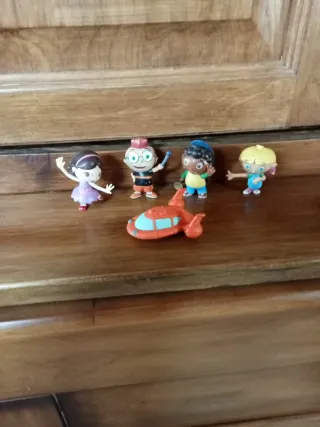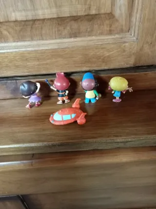Conjunto de figuras de personajes y un avión. - Incluye 4 figuras de personajes. - Un avión de juguete de color naranja y blanco.