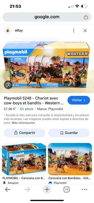 Set de Playmobil de la serie Western, modelo 5248. - Incluye carro, caballos y figuras. - Piezas para montar y jugar.