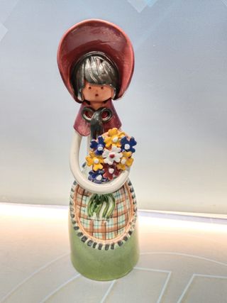 Preciosa figura artesanal de una niña sentada con un ramo de flores secas. Es una pieza única, ideal para decoración. - Figura de cerámica. - Diseño original Rita Jane. - Acabado rústico con detalles pintados a mano. - Comprada en Él Corte ingles.