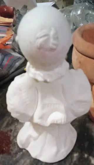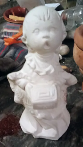 Figura de cerámica sin pintar, ideal para manualidades y decoración. - Diseño de niño o niña con detalles. - Superficie lisa para pintar. - Pieza única para coleccionistas. 50€ unidad