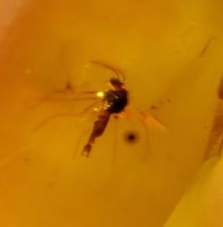 Un fascinante mosquito conservado en ámbar birmano, con una antigüedad de 99 millones de años. MA47 - Pieza de colección del período Cretácico. - Muestra la preservación de un insecto prehistórico.