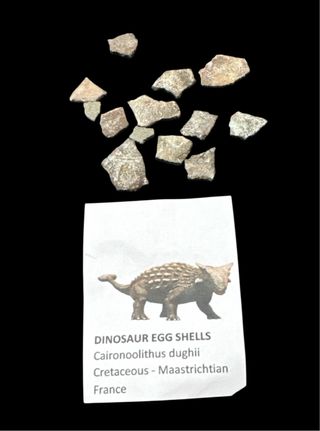 Fragmentos de cáscara de huevo de dinosaurio fosilizado. - Especie: Caironoolithus dughii - Periodo: Cretácico - Maastrichtiense - Origen: Francia ve-18