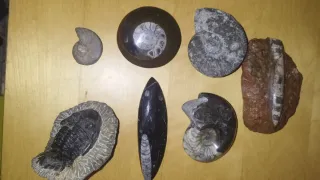 Se vende lote variado de minerales y fósiles. - Piezas únicas para coleccionistas. - Incluye diferentes tipos de rocas y restos de organismos antiguos. Incluyen; Trilobite, Braquiópodos, Amonite, Orthocera,corales, lote de dient. De tib.lamma y Carcharias. * Howlita blanca, lapislázuli, puntas de Cuarzo,Jacinto de Compostela, Vanaditina, corazón de Ónice,piedra luna, hematita y más. Sin cajitas * VWCmix016