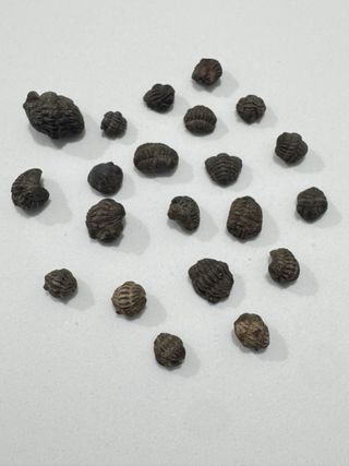 Conjunto de fósiles de trilobites juveniles. medidas 0,5 cm a 1,8 cm Son crías - Piezas de origen natural. - Ideal para coleccionistas de paleontología. VE- 19