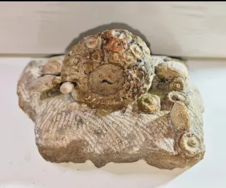 Interesante fósil de una concha marina, ideal para coleccionistas o amantes de la geología. - Forma irregular y textura rugosa. - Color beige claro.