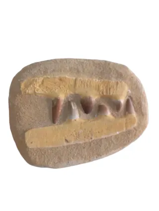 Impresionante fósil de un diente de dinosaurio, con su base de roca. - Diente de gran tamaño. - Base de roca natural. - Pieza de colección única.