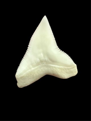 Pieza de fósil Otodus Premier. - Fósil de diente. - Forma característica de la especie.