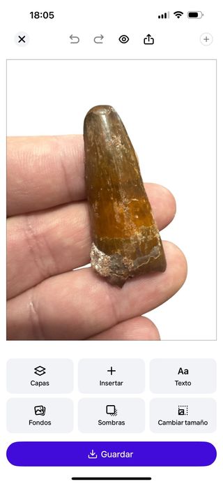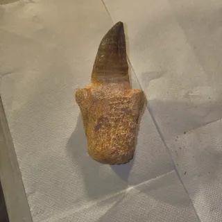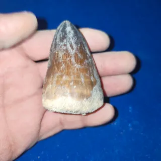 Se vende un fósil de diente de dinosaurio. Pieza única para coleccionistas. - Diente de forma cónica. - Textura rugosa y color marrón.