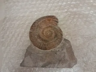 Auténtico fósil de ammonite de origen natural. Una pieza única para coleccionistas o amantes de la geología. 11x9 cm - Forma espiral característica. - Textura pétrea detallada. Amarillo TT-1