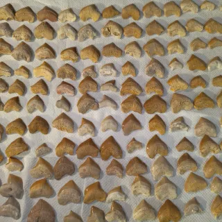 Colección de fósiles de dientes de tiburón. - Piezas únicas.200 piezas - Ideal para coleccionistas.