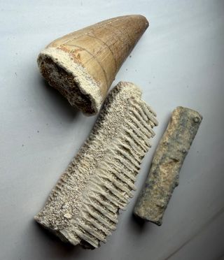 Lote 3 Fósiles: Diente Mosasaurio y más