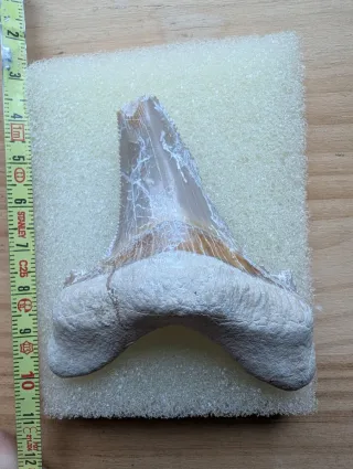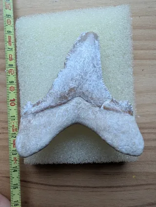 Impresionante diente auténtico de tiburón prehistórico Otodus obliquus. Proviene de los yacimientos de fosfatos de Marruecos 🇲🇦. 34 Estado: Conservación excelente con cúspides laterales intactas y esmalte natural. Medidas: ~6.5 cm de diagonal (ver fotos con regla). Edad: Eoceno (~55 millones de años). Pieza totalmente natural, sin restauraciones agresivas. Ideal para coleccionistas o como regalo educativo.