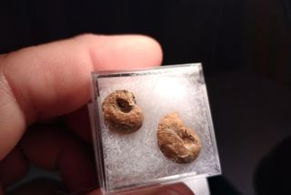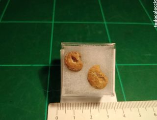 DOS EJEMPLARES DE AMMONITES FOSILES LIMONITIZADOS DEL CRETACICO DE EUROPA. PRESENTADO EN CAJA DE PLÁSTICO DE 3 X 3 CMS APROX. Hago lotes con descuento en fosiles toda la colección de mi perfil por 85€
