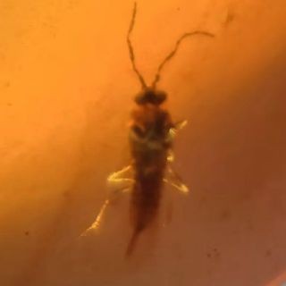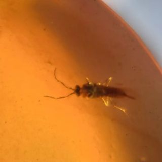 ESPECTACULAR PIEDRA SEMIPRECIOSA DE ÁMBAR AUTÉNTICO CON FORMA DE DIENTE ALARGADA Y BICHO AVISPA ATRAPADO EN SU INTERIOR DESDE LA EDAD DE LOS DINOSARIOS. ÉPOCA CRETÁCICA MEDIDAS: 14,2 x 6,2 x 6,0 mm PESO: 0,50 g FOTOGRAFÍAS REALIZADAS CON TELÉFONO MÓVIL EN OBJETIVO MACRO LAS MEDIDAS Y PESO CORRECTO SON LAS QUE APARECEN EN LA DESCRIPCIÓN DEL ARTÍCULO.