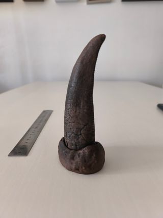Impresionante réplica de diente de Tyrannosaurus Rex, fabricado en impresora 3D y pintado completamente a mano para lograr un acabado realista con textura envejecida. 📏 Medidas aproximadas: 15 cm de alto (ver foto con regla). 🎨 Pintura artesanal con efecto fósil. 🖐 Pieza sólida y resistente. 🦴 Ideal para decoración temática, coleccionistas, amantes de los dinosaurios o regalo original. Queda espectacular en estanterías, escritorios o vitrinas. No es un juguete infantil, es una pieza decorativa. Se entrega tal cual aparece en las fotos. 💬 Si tienes dudas, pregúntame sin compromiso.