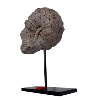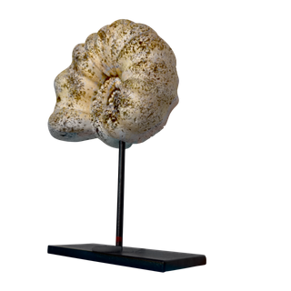 Amonita – Réplica artesanal en resina de poliuretano. Reproducción artesanal de una amonita fósil, creada en resina de poliuretano envejecida a mano. Cada detalle, desde las texturas hasta los matices del color, están trabajados cuidadosamente para reflejar la belleza natural y el paso del tiempo. - Detalles del producto: - Material: resina de poliuretano. - Acabado: pintado y envejecido a mano. - Dimensiones aproximadas: 26cm de alto x 18cm de ancho y unos 6cm de grosor. - Soporte metálico incluido. - Pieza única, firmada por el artista. - Ideal para coleccionistas, museos o decoración.