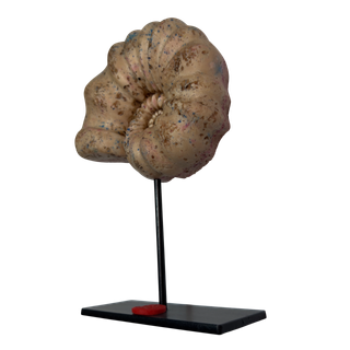 Amonita – Réplica artesanal en resina de poliuretano en tonos rosas. Reproducción artesanal de una amonita fósil, creada en resina de poliuretano envejecida a mano. Cada detalle, desde las texturas hasta los matices del color, están trabajados cuidadosamente para reflejar la belleza natural y el paso del tiempo. - Detalles del producto: - Material: resina de poliuretano. - Acabado: pintado y envejecido a mano. - Dimensiones aproximadas: 26cm de alto x 18cm de ancho y unos 6cm de grosor. - Soporte metálico incluido. - Pieza única, firmada por el artista. - Ideal para coleccionistas, museos o decoración.