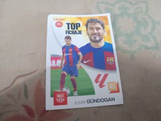 Carta de coleccionismo de Ilkay Gündogan, jugador del FC Barcelona. - Top Fichaje de la Liga Este 2023. - Incluye imagen del jugador en acción y retrato. - Diseño con escudo del FC Barcelona y logo de LaLiga.