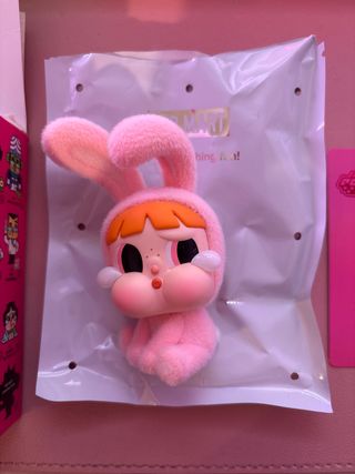 Figura coleccionable de Crybaby con temática de Powerpuff Girls. Un diseño adorable y llamativo. - Figura de terciopelo. - Color rosa. - Orejas de conejo.