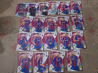 Colección de 23 cromos de jugadores del FC Barcelona de la temporada 2023-2024 de La Liga. - Incluye cromos de jugadores como Pedri, Gündogan, Koundé, Oriol Romeu, Alejandro Balde y Andreas Christensen. - Cromos oficiales de La Liga.