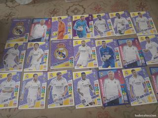 Lote de 25 cromos de la colección de la Liga Este 2023-2024 del Real Madrid. - Incluye jugadores como Camavinga, Ceballos, Rodrygo, Mendy, Carvajal, Lucas Vázquez, Fran García, Courtois y Rüdiger. - Cromos en perfecto estado, listos para tu colección.
