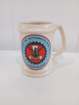 Jarra conmemorativa del Parque de Automovilismo N°4 de Cartagena. Color crema. Jarra militar de la armada. Ejercito, taza, marina.