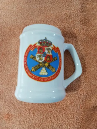 Jarra conmemorativa del Centro de Mantenimiento de Sistemas AA de costa y misiles - Diseño con escudo y emblemas militares. - Texto: CENTRO DE MANTENIMIENTO DE SISTEMAS AA. COSTA Y MISILES. taza, militar, ejercito