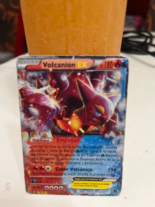 Carta Pokémon de Volcanion EX, edición básica. - Habilidad: Empañar - Ataque: Calor Volcánico (130) - Debilidad x2 - Regla para Pokémon-EX
