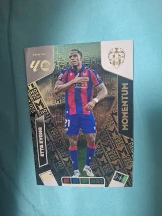 Coleccionable de fútbol Panini Momentum. - Cromo de Etta Eyong. - Serie Momentum. - Incluye detalles de estadísticas. -Negociable.