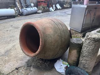 Tinajas antiguas de barro, recuperadas de una bodega de vino de hace 40 años, muy bien conservadas y con firmas del creador. perfectas para decoración rústica o jardín. El precio es por unidad, hay tres. Si se compra el lote se dejarían las tres en 1.550 € Tienen una altura de 2,10 m aproximadamente.