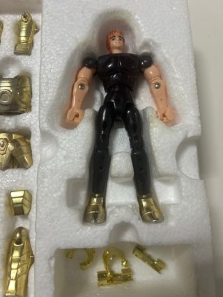 Set de armaduras doradas de los Caballeros del Zodiaco. bandai 1987 - Piezas metálicas doradas. - Incluye figura de personaje. - Accesorios de armadura.