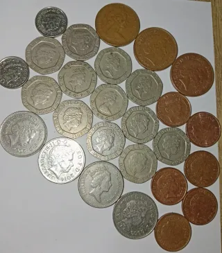 Conjunto de monedas de libra esterlina británica. - Monedas de 50 peniques con fechas 1995, 1998, 2005. - Monedas de 1 libra con fechas 2016, 2017, 2018. - Diseño de la Reina Isabel II en todas las monedas.