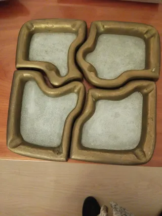 Conjunto de cuatro centros de mesa con un diseño único y elegante. - Diseño ondulado distintivo. - Acabado en tono dorado. - Material resistente.