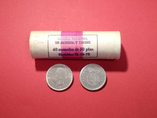 VENDO: LOTE Nº 36. CARTUCHO DE 40 MONEDAS DE 50 Ptas. 1975*80 S/C. REY Y ESCUDO DE ARMAS, DE LA FNMT. (HAGO LOTES PARA ENVIOS MAS ECONOMICOS) - Valor nominal 50 pesetas. - Fabricado por la Fábrica Nacional de Moneda y Timbre. - Fecha de emisión: 18-12-75.
