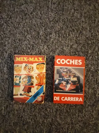 Lote de dos cajas de naipes de la marca Fournier. - Caja de Mix-Max con ilustraciones de payasos y personajes. - Caja de Coches de Carrera con imagen de Fórmula 1.