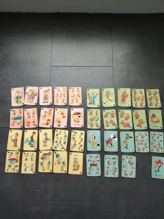 Conjunto de cartas para el juego de La Escoba. Incluye varias cartas con ilustraciones de personajes. - Cartas con dibujos animados. - Ideal para coleccionistas o para jugar. - Variedad de personajes en las cartas. - Falta una CARTA. E