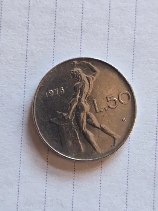 Moneda italiana de 50 liras del año 1973.